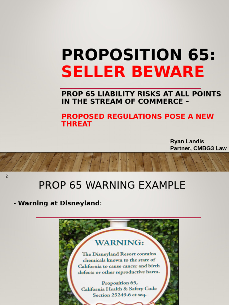 Prop 65 Update Seller Beware re Compliance with Prop 65 warnings