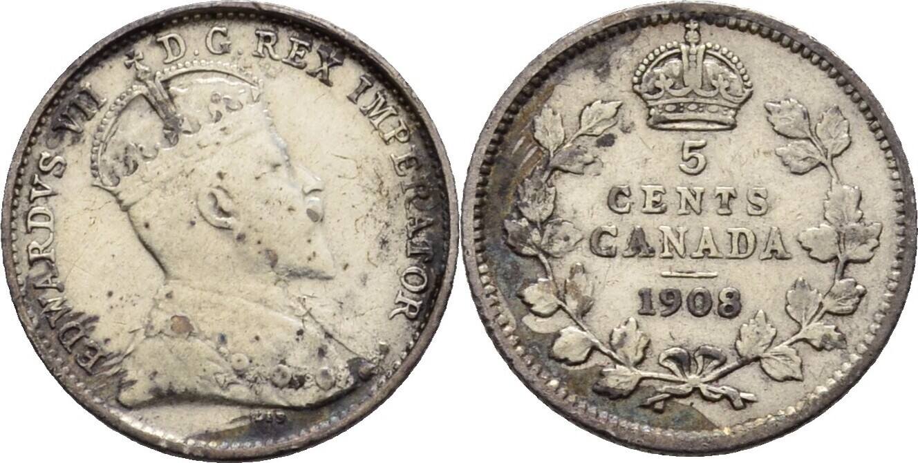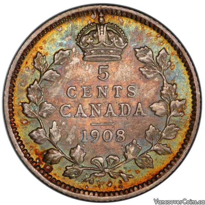 1908 Canadian 5 cent silver coin Schmalz Auctions