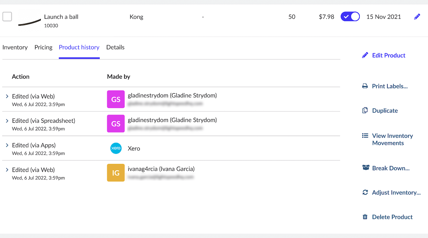 Reviewing a product's history in your catalog Lightspeed Retail (X