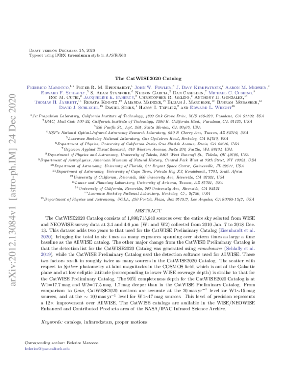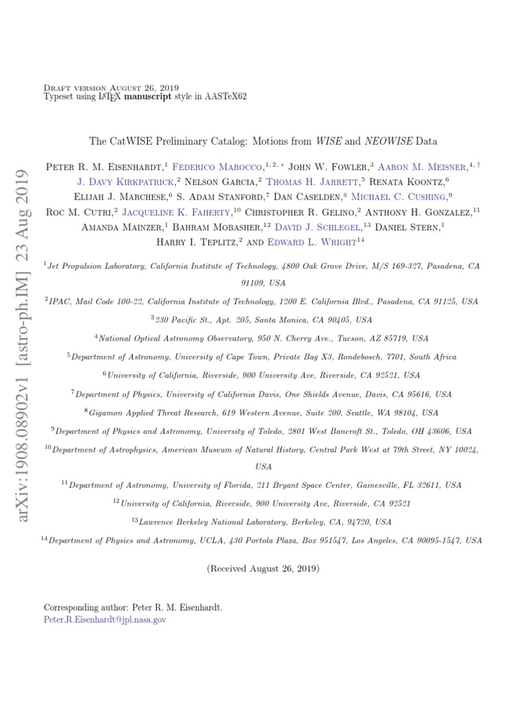 (PDF) The CatWISE Preliminary Catalog Motions from WISE and NEOWISE Data