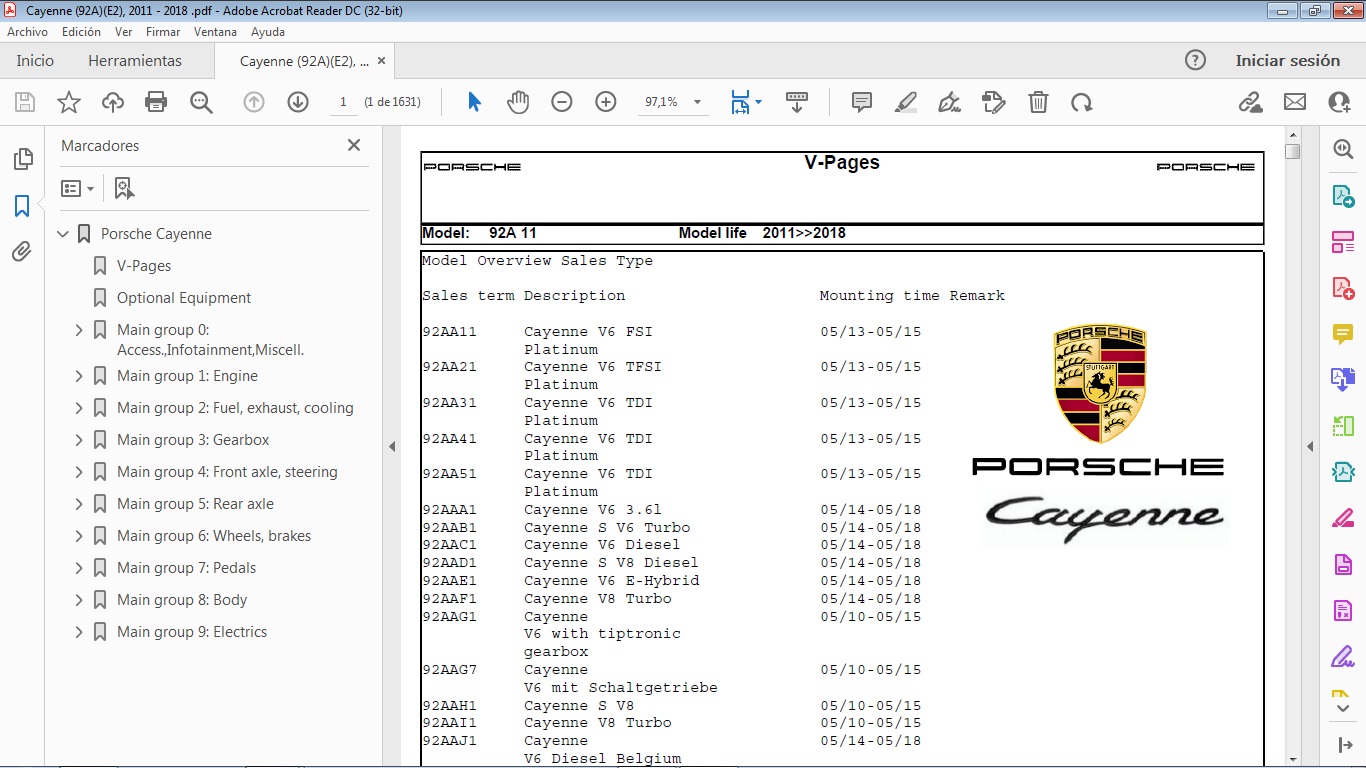 PORSCHE CAYENNE 92A 20112018 Parts Catalogue Despiece