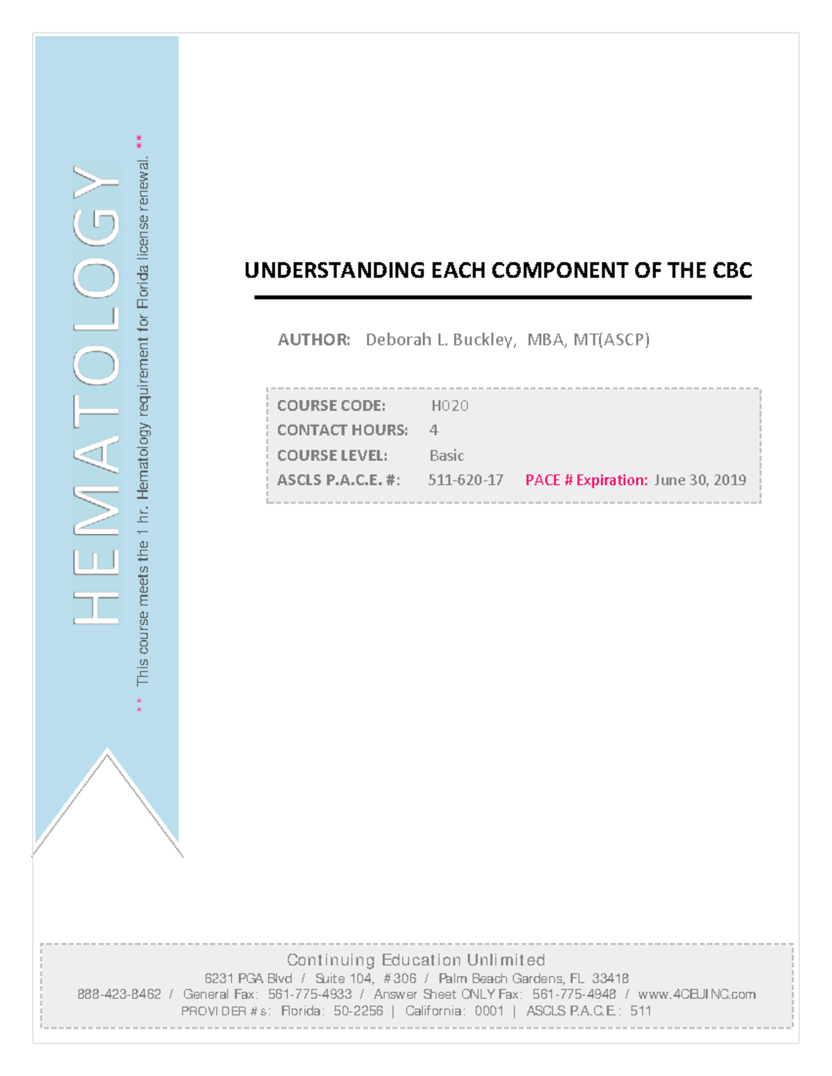 Composition of blood notes UNDERSTANDING EACH COMPONENT OF THE CBC
