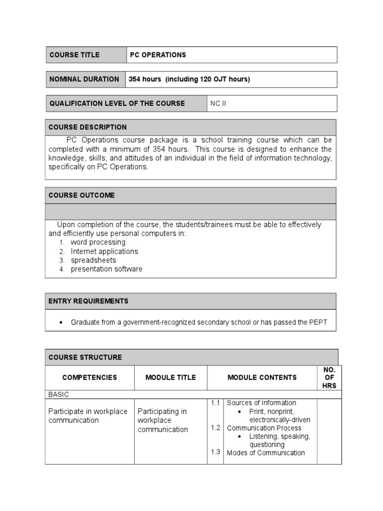 CBC Course Design Template PDF Application Software Communication