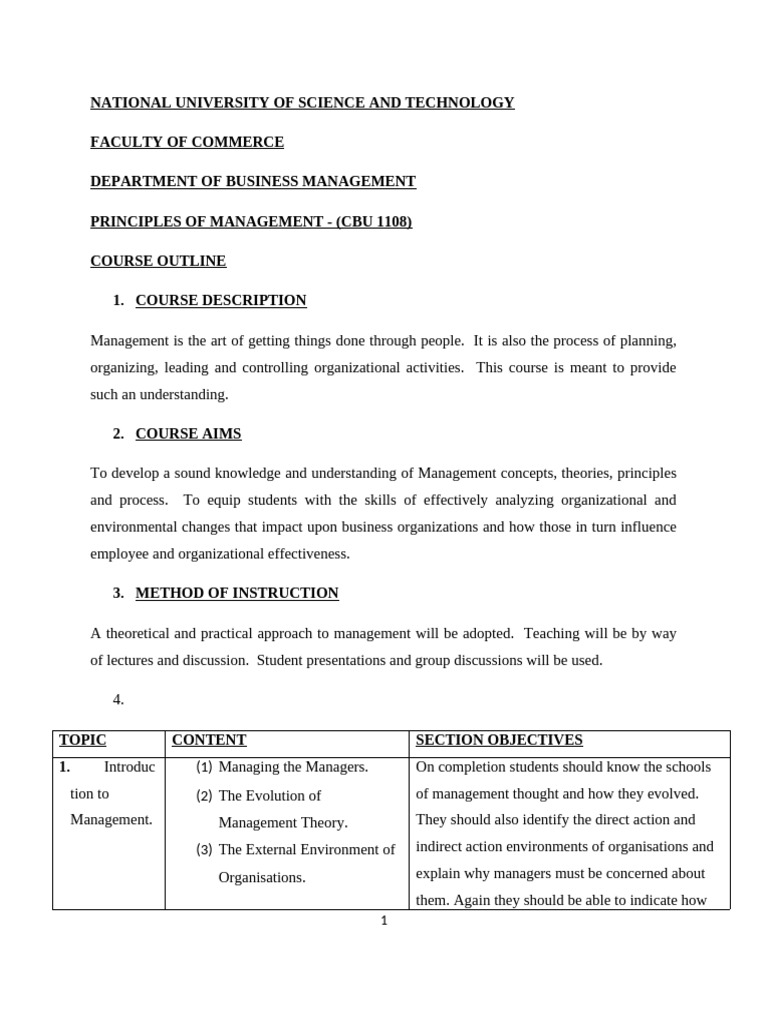 CBU 1108 Course Outline PDF Leadership Strategic Planning