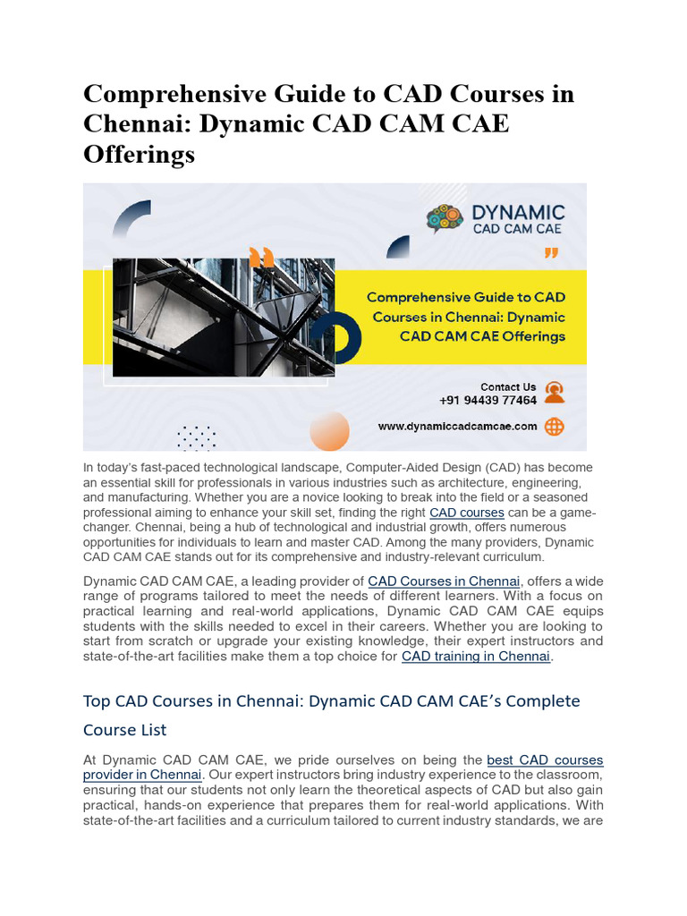 Comprehensive Guide To CAD Courses in Chennai PDF Mechanical
