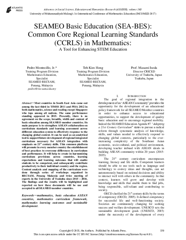 (PDF) SEAMEO Basic Education (SEABES) Common Core Regional Learning
