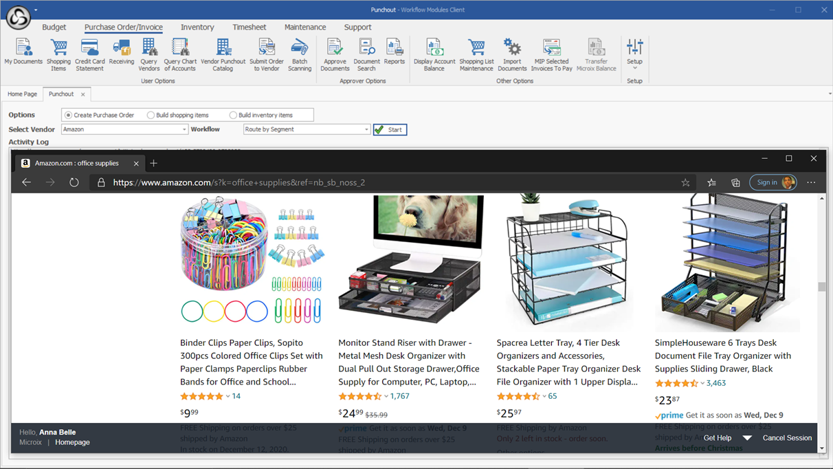 Purchase requisition PunchOut External catalog. OrganicAX