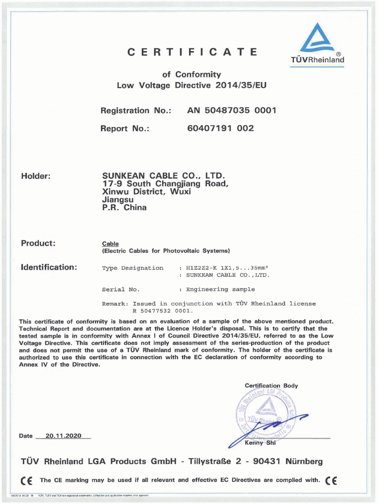 CE Certificate For Power CableHonours and CertificatesShenzhen