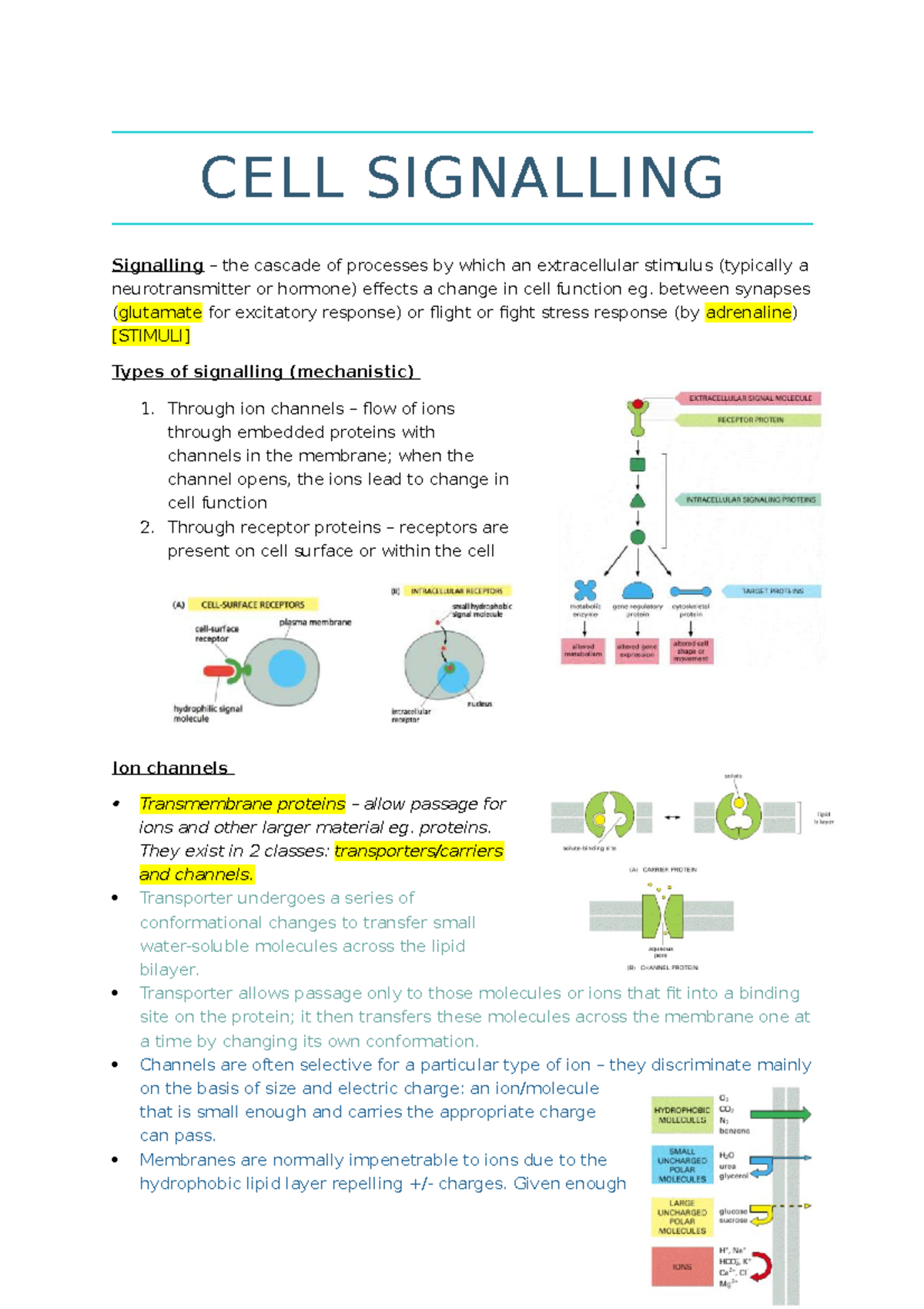 Cell signalling Notes for cell0001 CELL SIGNALLING Signalling the