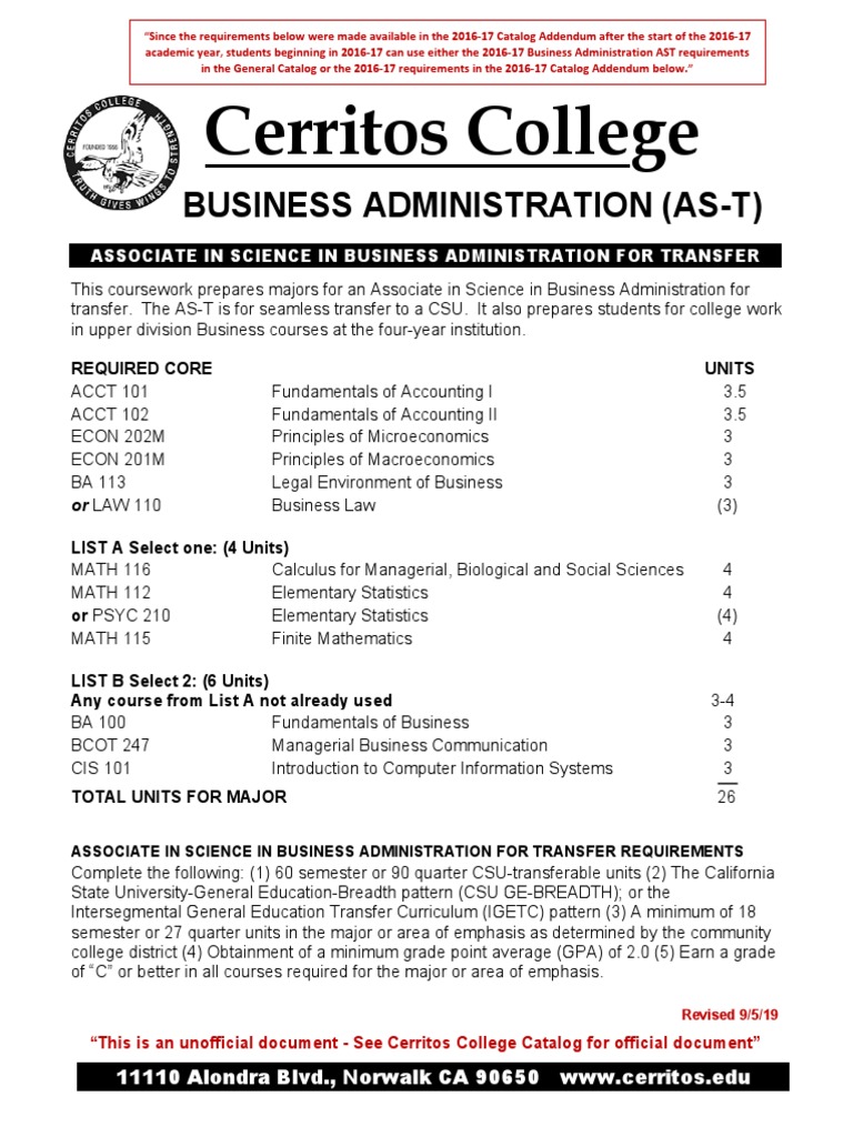 Cerritos College Business Administration (AsT) PDF Associate