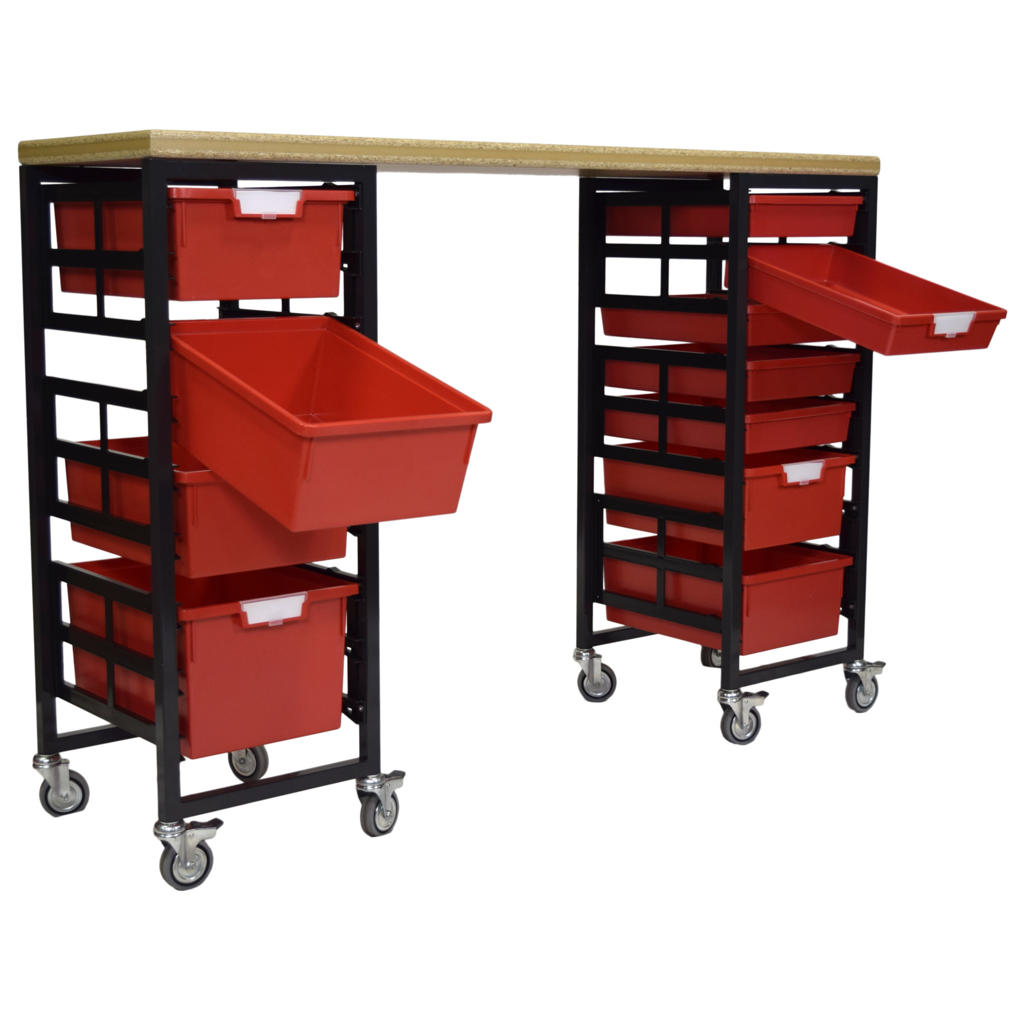 Certwood StorWerks, Mobile Work Station w/Wood Top 9 TraysRed