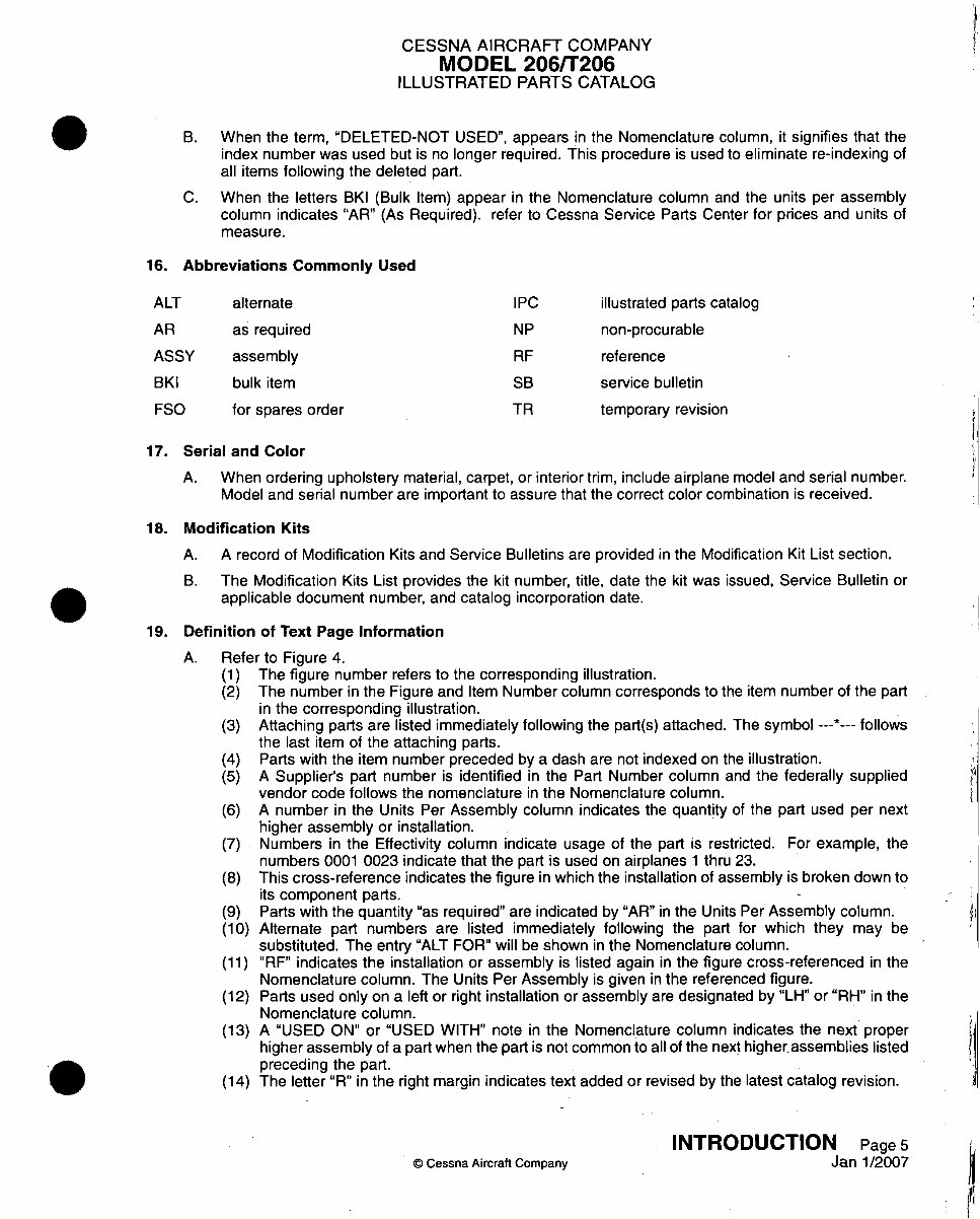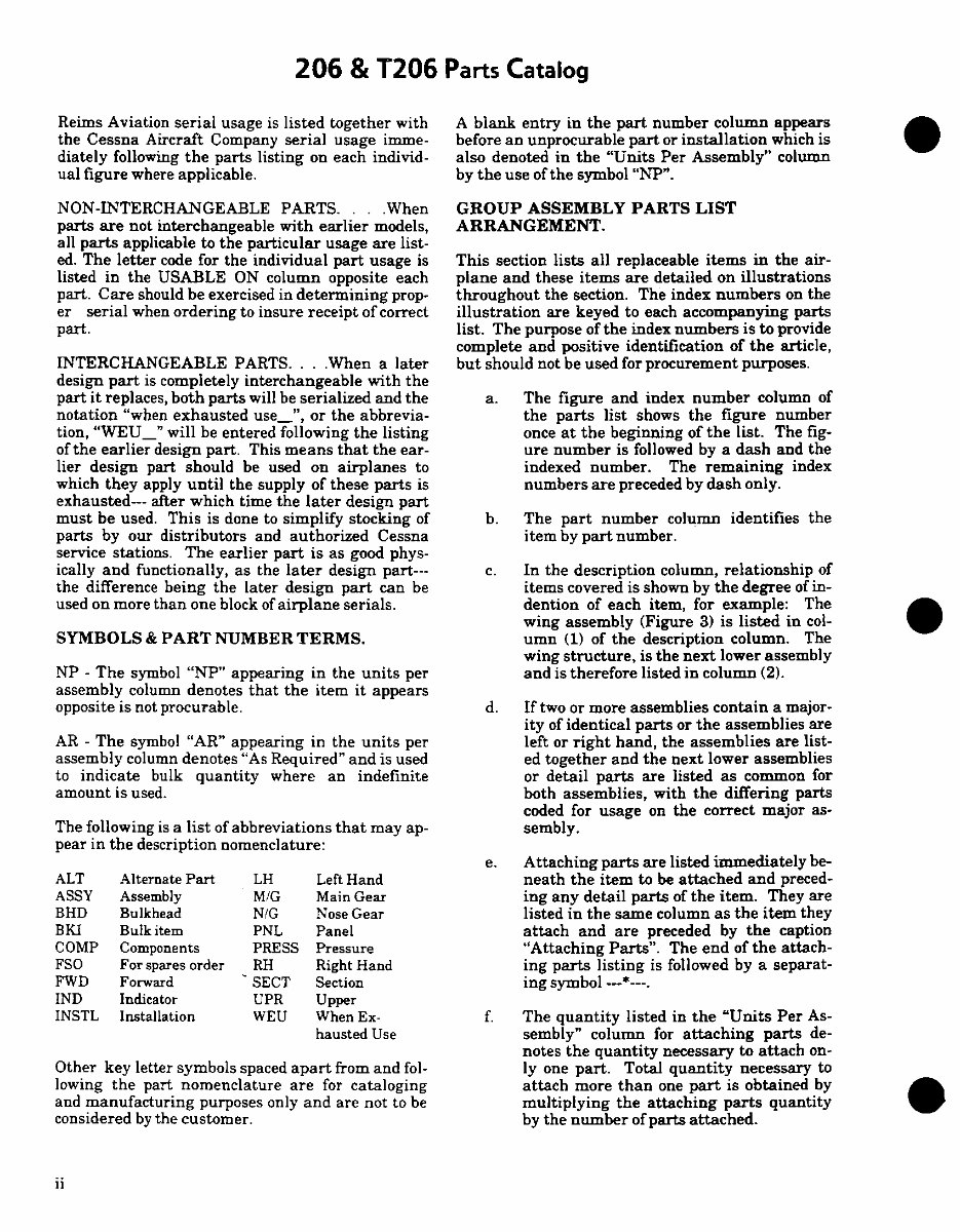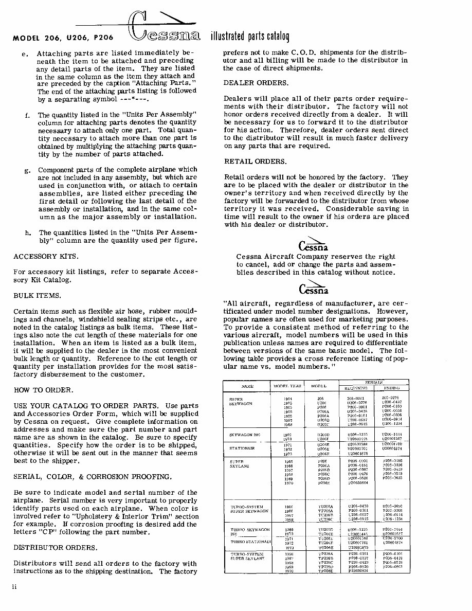 Cessna Model 206 & T206 Series Illustrated Parts Catalog 1974 THRU 1986