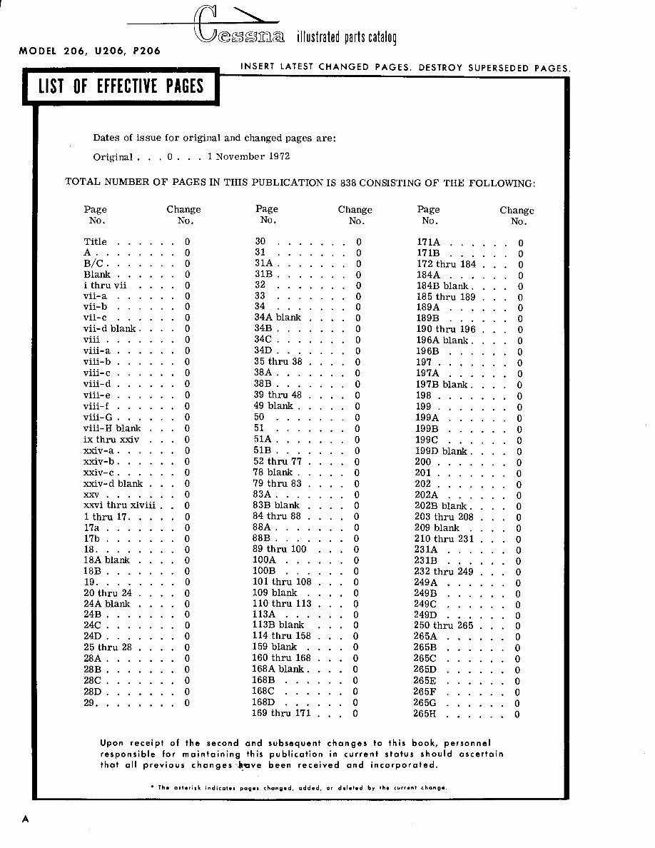 Cessna 206 Illustrated Parts Manual Catalog 19641973 IMPROVED