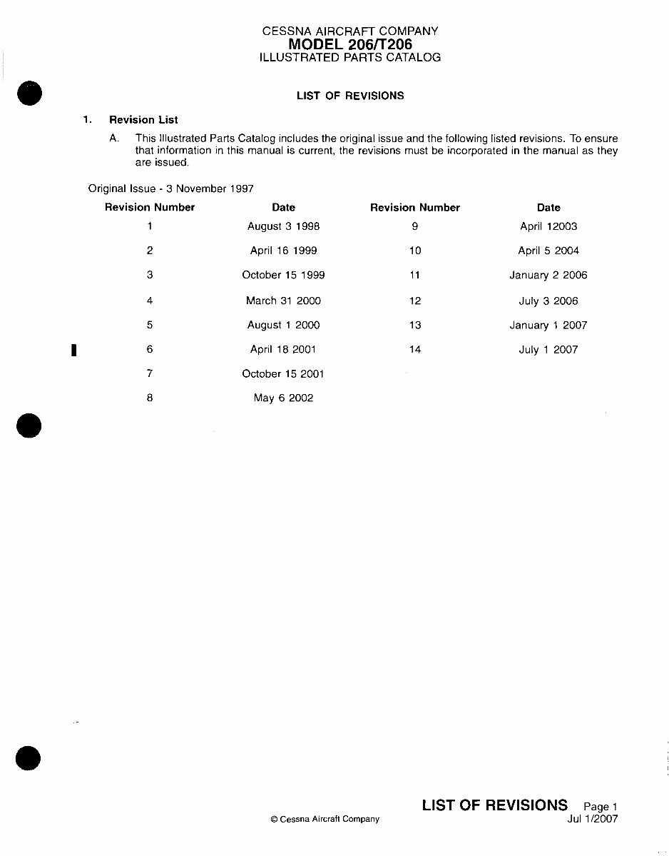 Cessna Model 206 Illustrated Parts Catalog 206HPC25 PDF