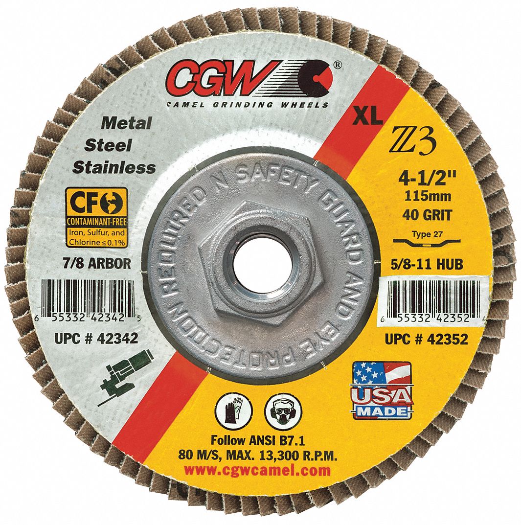 CGW ABRASIVES, Type 27, 41/2" x 7/8", Flap Disc 33TH6242304 Grainger