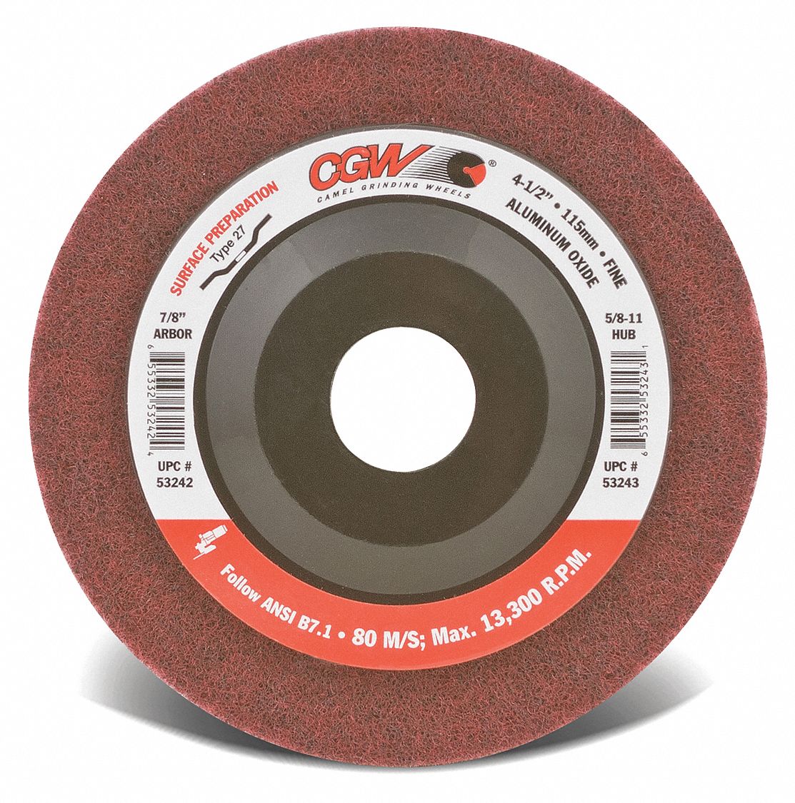 CGW ABRASIVES SURFACE PREP WHEEL, TYPE 27, 13,700 RPM, VERY FINE GRADE
