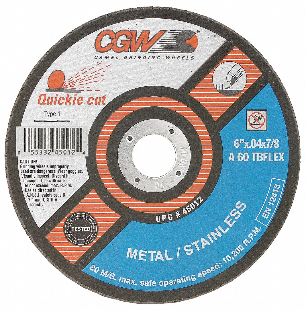 CGW ABRASIVES, Type 1, 6" x 0.045" x 7/8", Abrasive CutOff Wheel