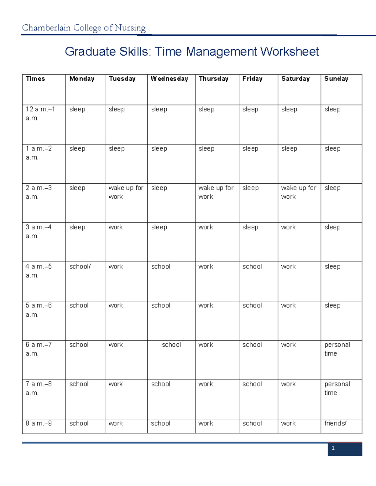Chamberlain College of Nursing Graduate Skills Time Management