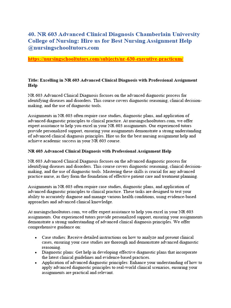 NR 603 Advanced Clinical Diagnosis Chamberlain University College of