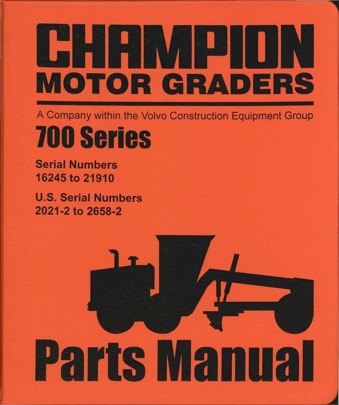 Champion Motor Grader Compact Models Parts Manual Used Equipment Manuals