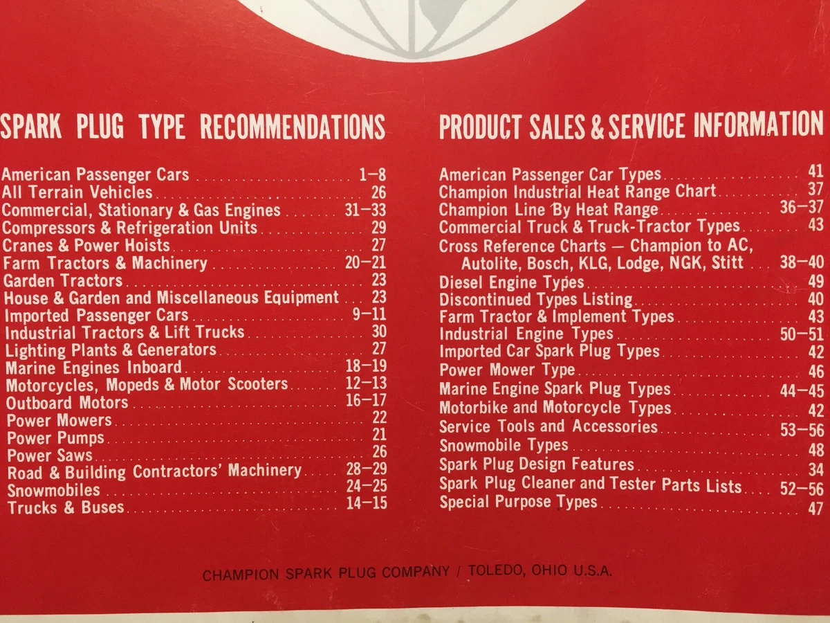1959 Vintage Champion Spark Plug Application Chart Guide for 1920s1959