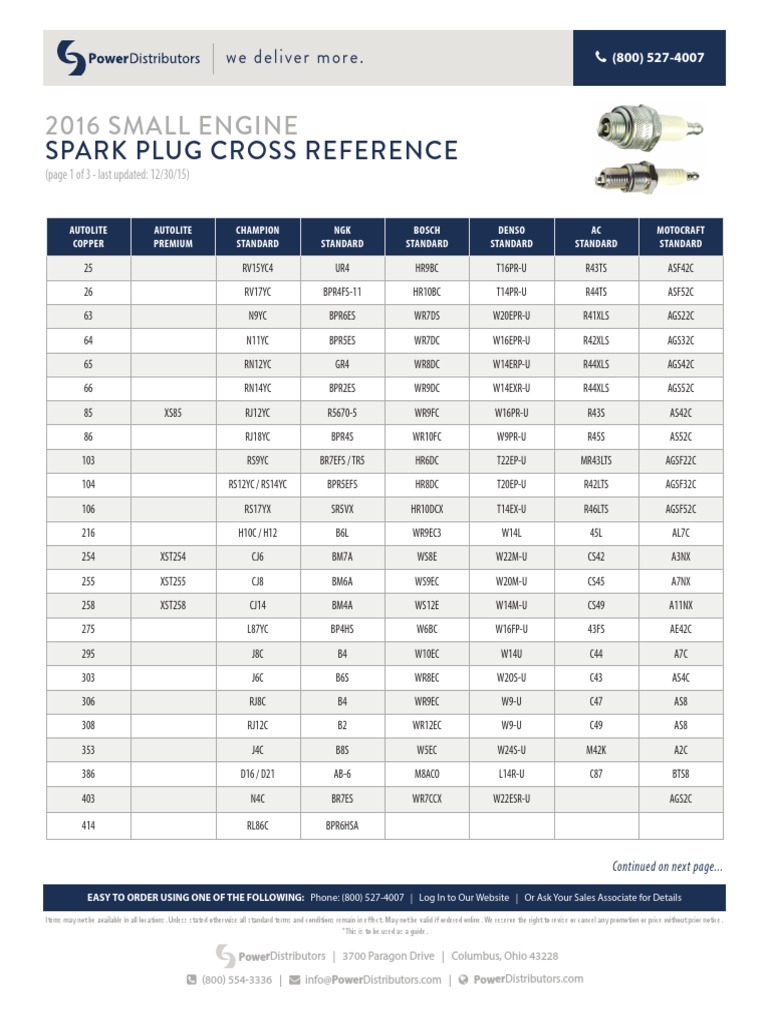 Spark plug cross reference chart pdf