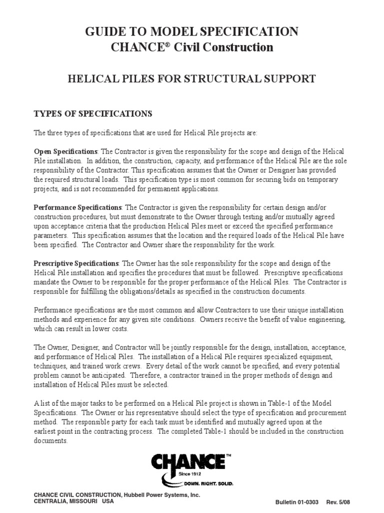 CHANCE Helical Piles For Structural Support Guide Specification PDF