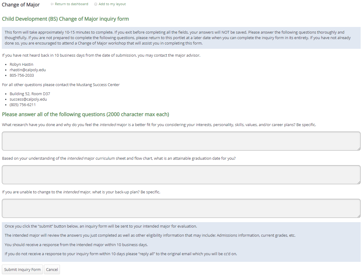 Change of Major Academic Advising Cal Poly, San Luis Obispo