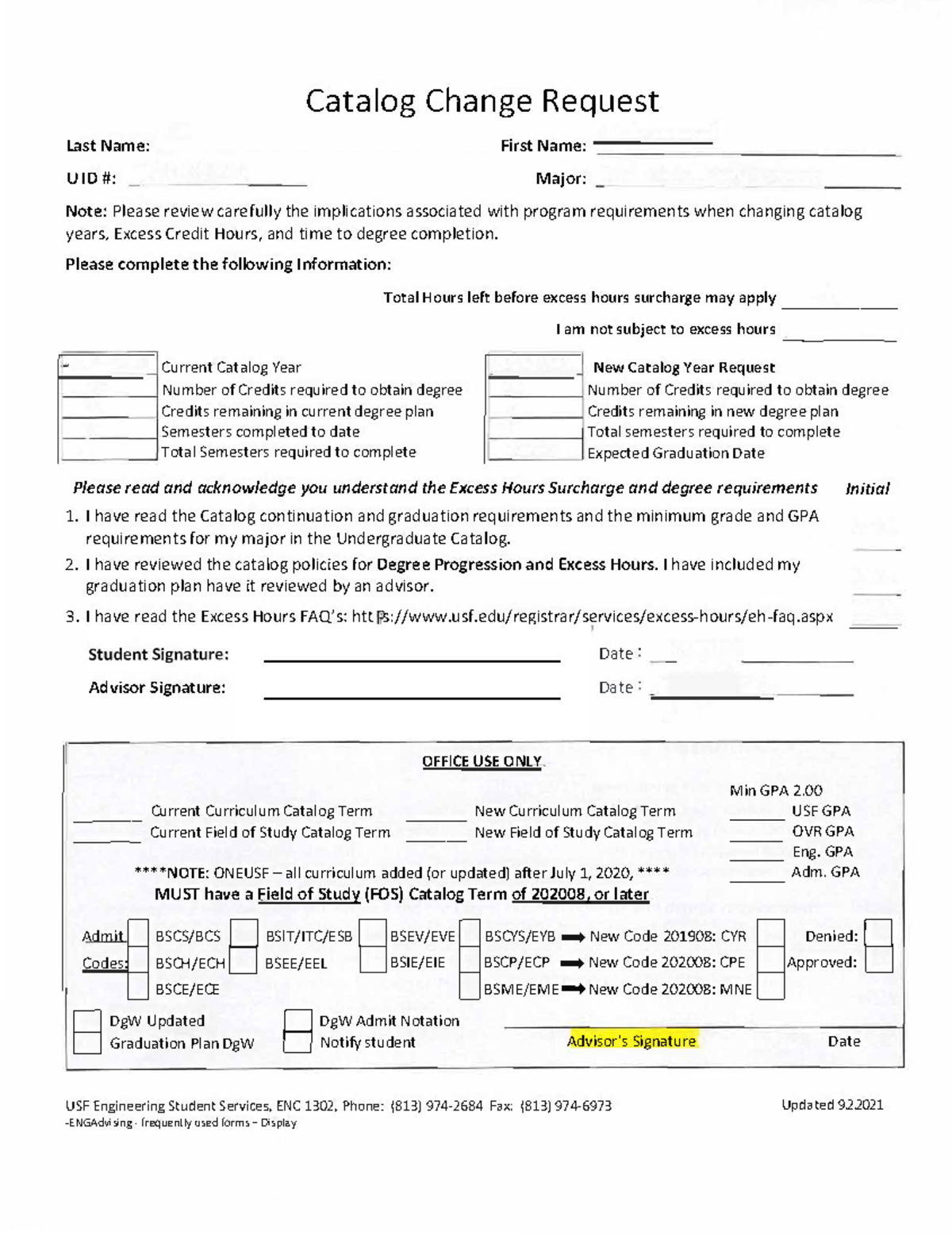 Fillable Online Change of Catalog Year Request Form Fax Email Print