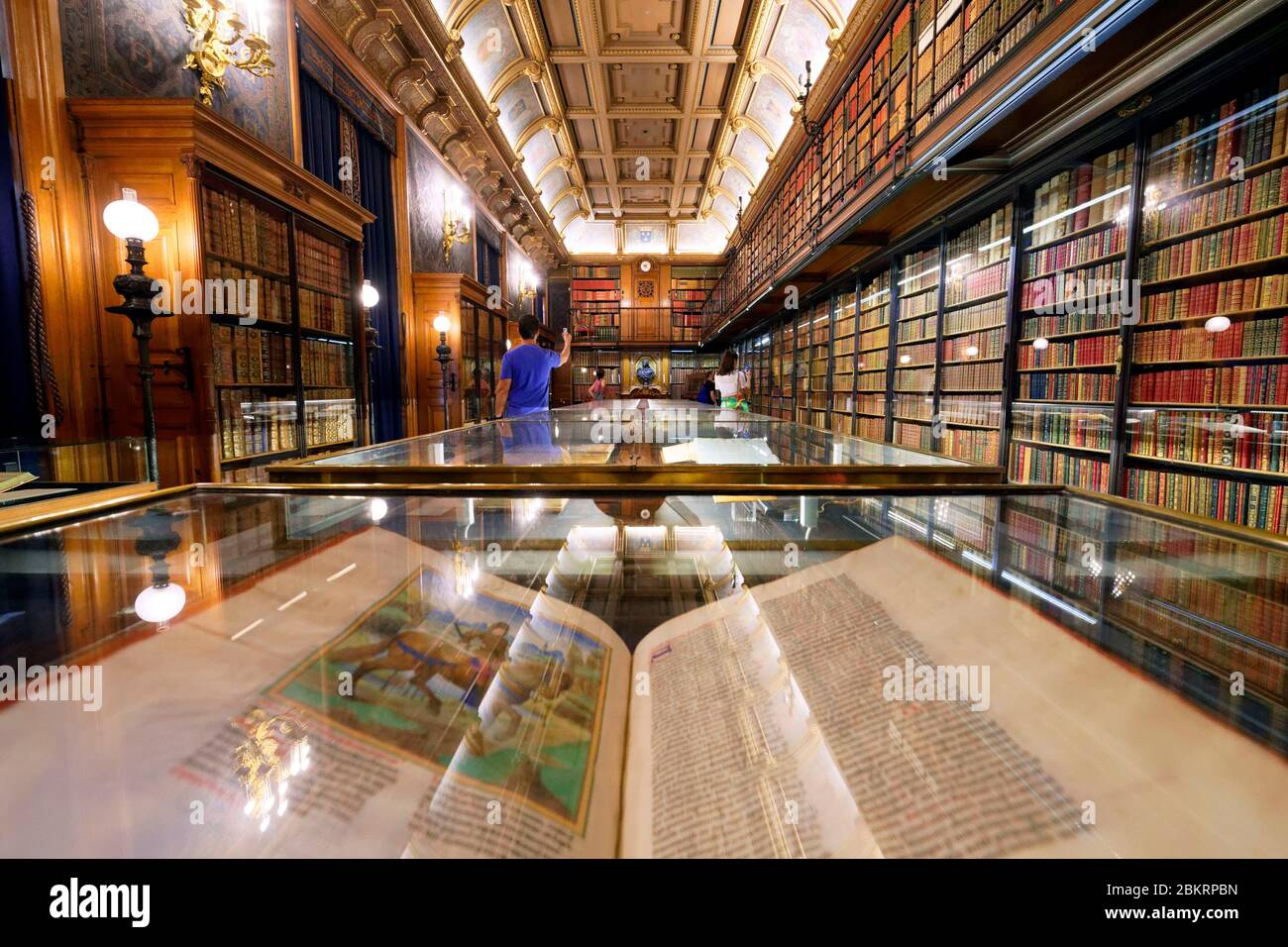Chantilly France ,Tourists Visiting in Library Looking at Old Books on