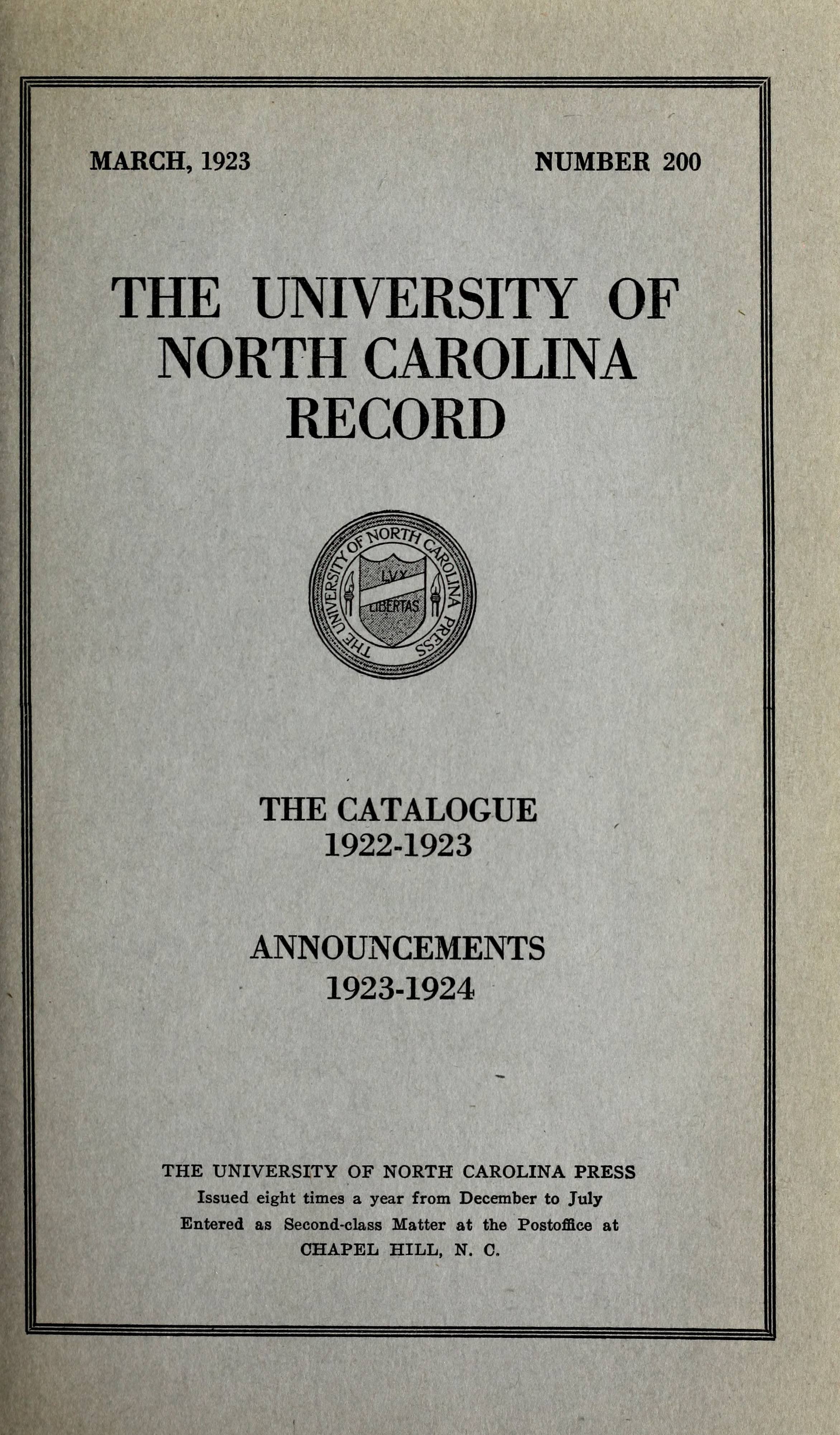 Catalogue of the University of North Carolina at Chapel Hill [19221923]
