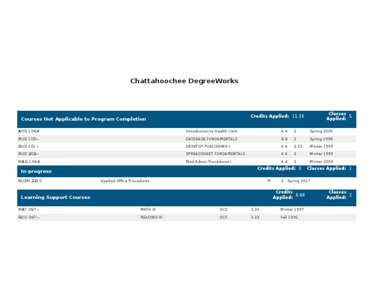 Chattahoochee Degreeworks Courses Not Applicable To Program Completion
