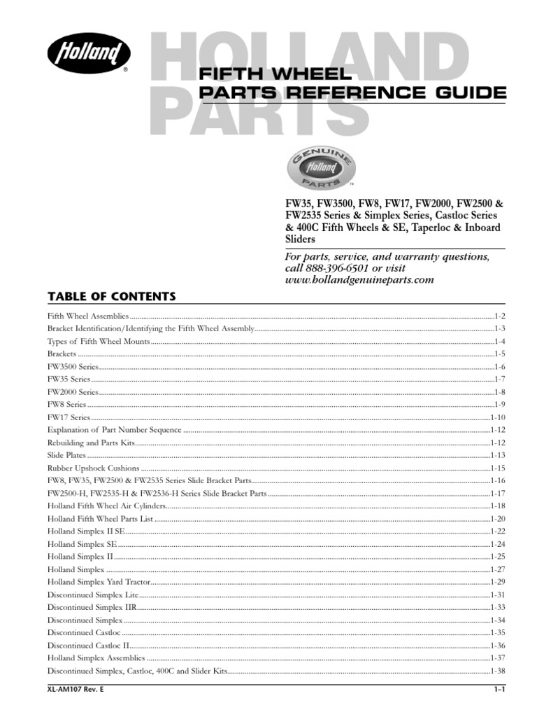 Holland Simplex Fifth Wheel Parts Catalog Catalog Library