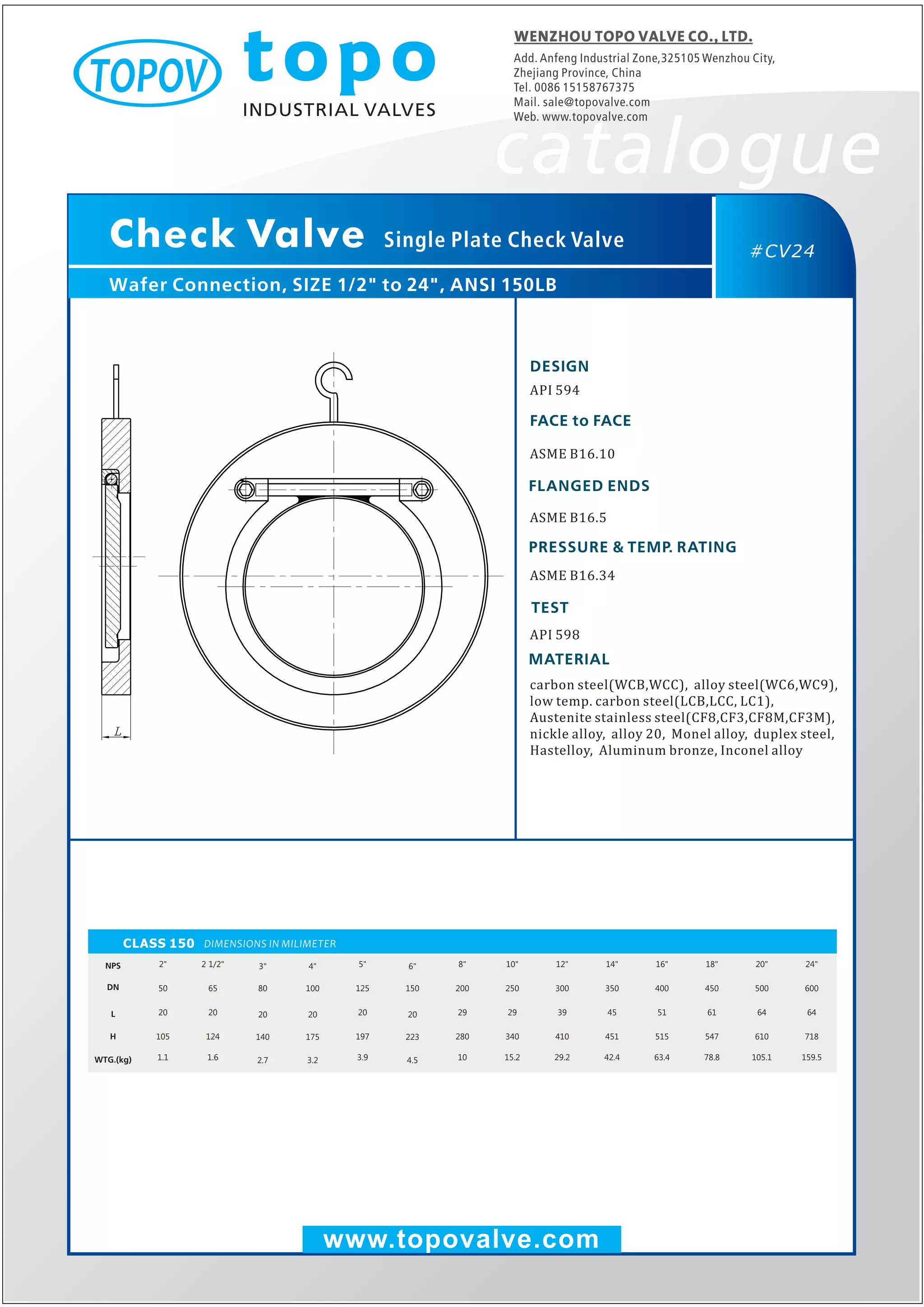 Wafer single plate check valve 150 lb topo valve catalogue PDF
