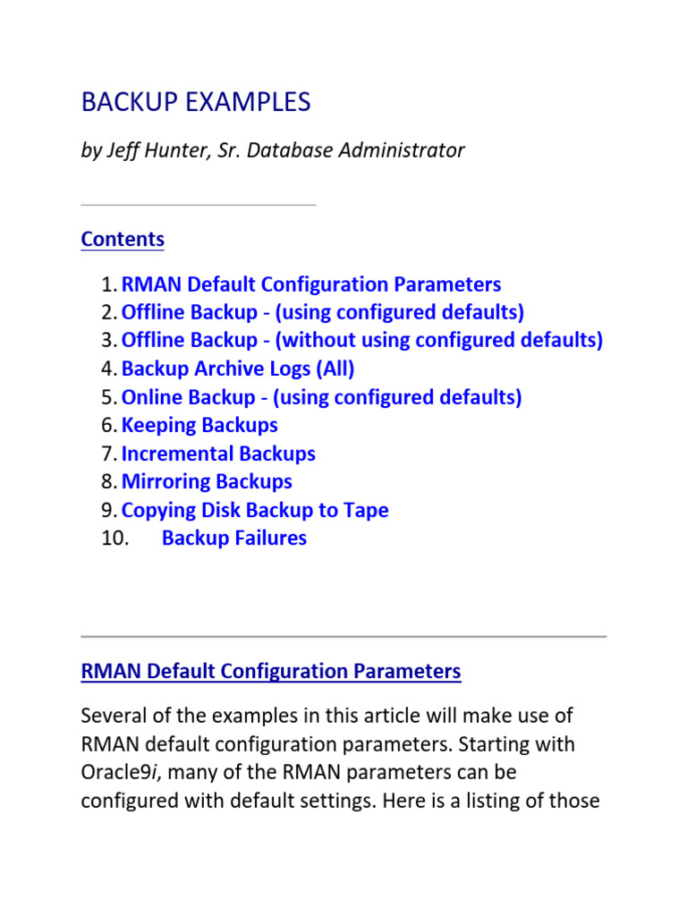 RMAN BACKUP EXAMPLES PDF Backup Information Technology