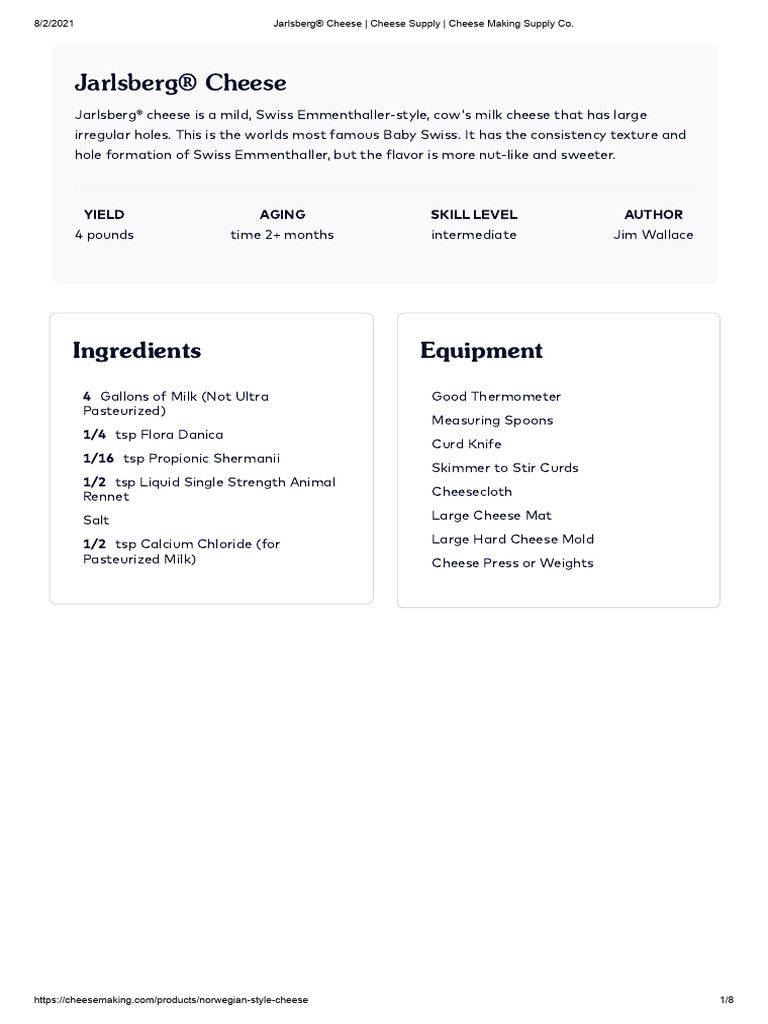Jarlsberg® Cheese Cheese Supply Cheese Making Supply Co PDF
