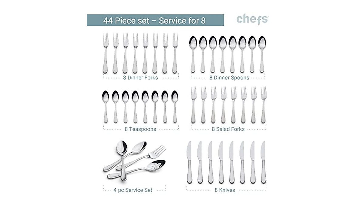 MorningSave Chefs Harlow 44Piece 18/10 Premium Flatware Set