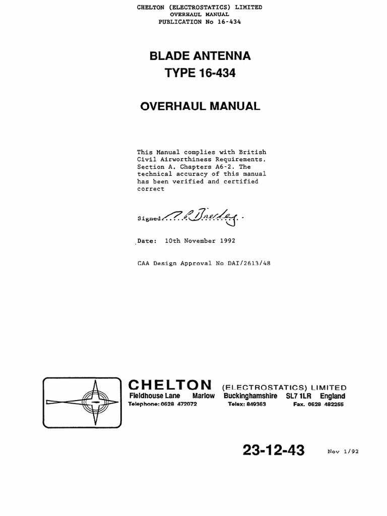 Chelton Blade Antenna TYPE 16434 PDF Antenna (Radio) Electrical
