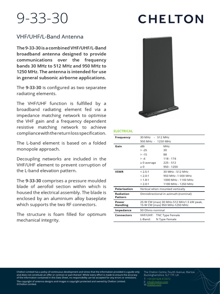 Chelton Type 93330 VHF Uhf L Band Antenna PDF Antenna (Radio
