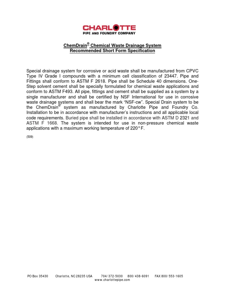 Charlotte Pipe and Foundry'S Chemdrain CPVC Chemical Waste Drain System