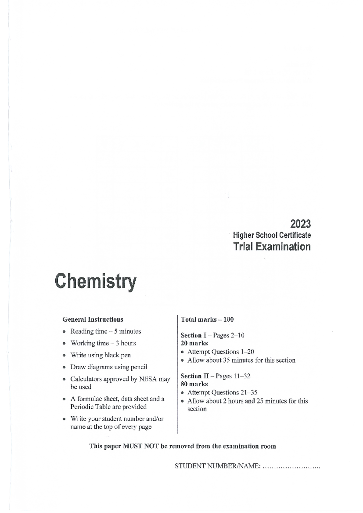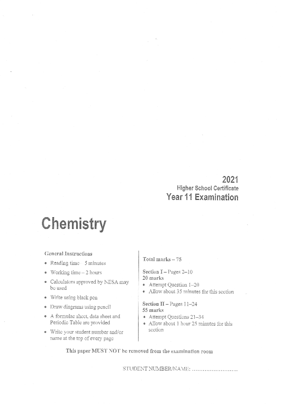 2021 Yr 11 Chemistry Independent Paper 2021 Higher School Certificate
