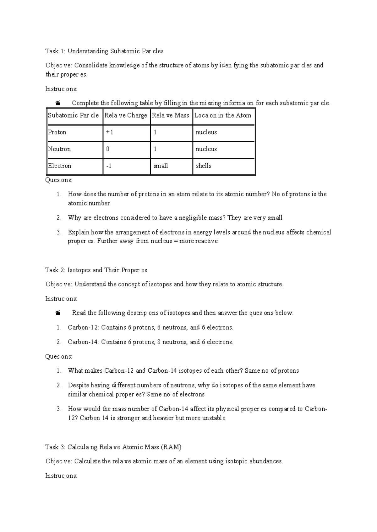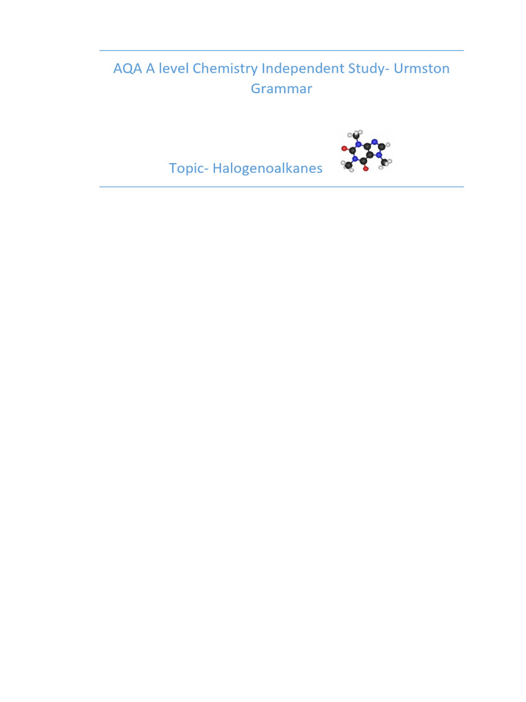 Chemistry Independent Study Yr12 Week 1 Task 1 Understanding