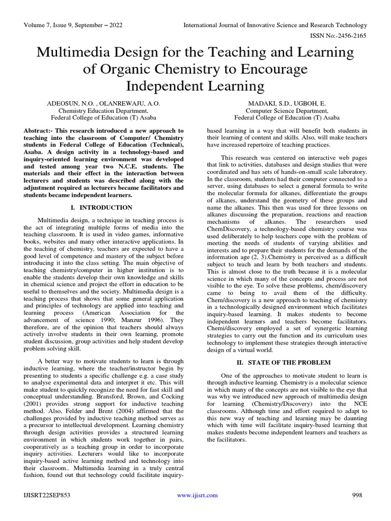 Multimedia Design For The Teaching and Learning of Organic Chemistry To