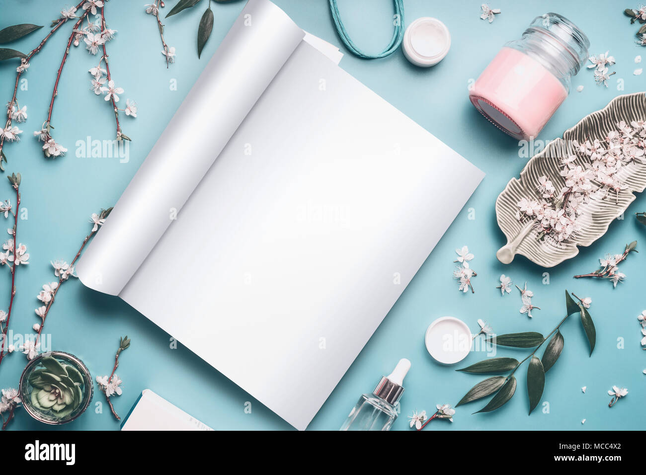 Mockup of open magazine or catalog for beauty and cosmetic products on