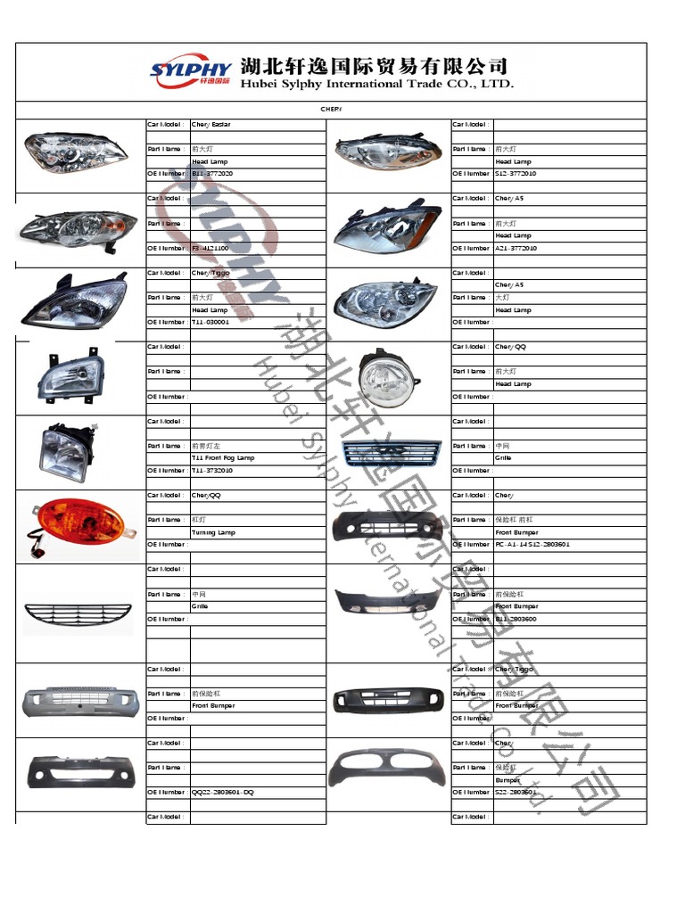 Chery qq parts catalog tiggo suv parts fulwin parts