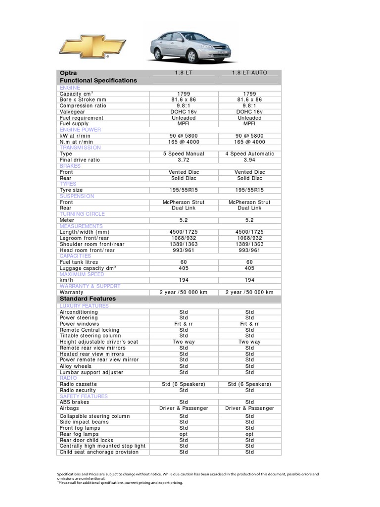 Optra Functional Specifications Engine PDF Sedans Land Vehicles