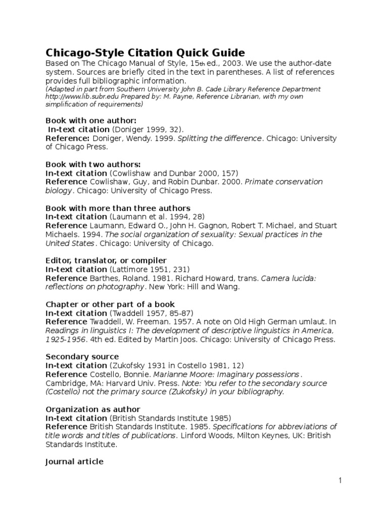 Chicago Manual of Style Quick Guide PDF Citation Reference