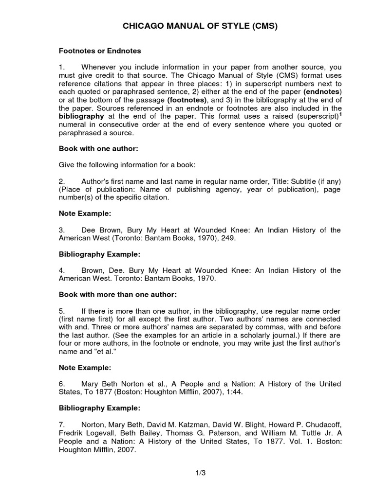 Chicago Manual of Style Documentation I Notes and Bibliographies