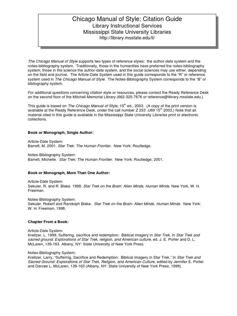Chicago Manual of Style Citation Guide Library Instructional Services