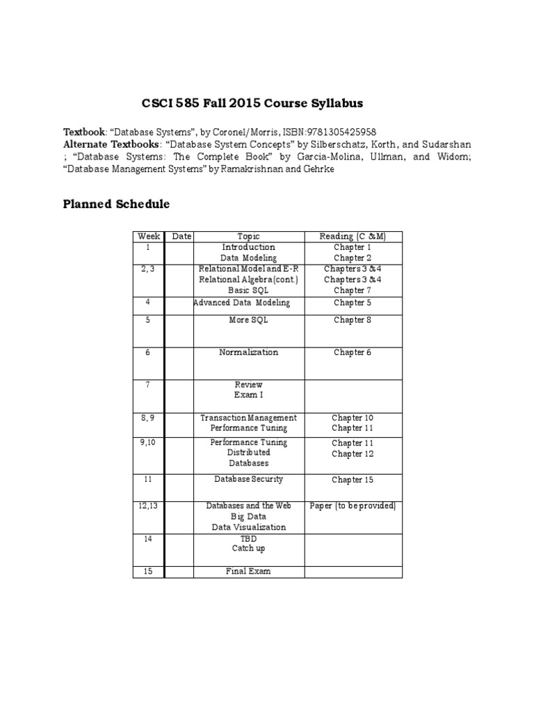 CSCI 585 Fall 2015 Course Syllabus Textbook Alternate Textbooks PDF